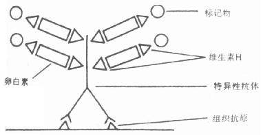 该技术方法是用生物素分别标记抗体和酶,然后以抗生物素为桥,把两者连接起来(图6-2)。