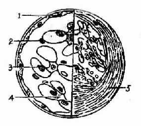 1.肾小囊壁层 2.上皮细胞 3.内皮细胞 4.系膜细胞及基质 5.新月体
