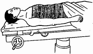 麻醉药注入蛛网膜下腔后,一般只需十数分钟即已固定于神经组织中,产生的麻醉范围即不再变化,故要求在药物起效时间内尽快将平面控制在手术需要的范围,平面调节是否恰当将影响麻醉的成败和病人的安全。影响麻醉平面的因素很多,如穿刺部位、局麻药的比重、剂量和容积、体位、穿刺针斜口的方向、注药速度、麻药本身的性能及个体差异等,调节平面时均应综合考虑(图1-31、1-32)。