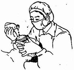 图1-18 开放滴醚示意图(示左手将下颌)