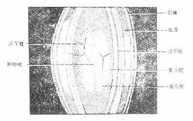 3.晶体纤维:是构成晶状体的主要成份。其结构层次颇类似洋葱头,可分为两部分。(1)晶体皮质,新形成的晶体纤维位于囊膜下,居于外层,质软,构成晶体皮质。随纤维的老化,旧的纤维被挤向中央、脱水、硬化而形成晶状体核。(2)晶状体核,自外向内可为成人核、婴儿核、胎儿核、胚胎核。