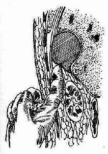 位后,用2%红汞消毒该处,随即在隆起处用穿刺针向前上方刺入。