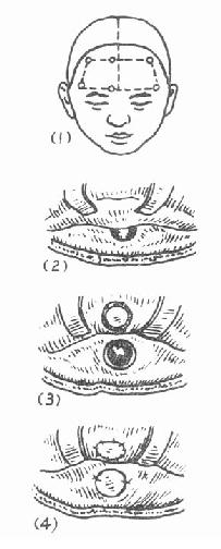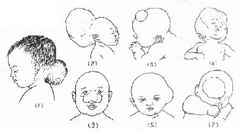 (4)前囟部 (5)颞部 (6)前额部 (7)眼眶部