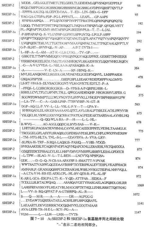 图7-10 A:SREBP-2和SREBP-1a氨基酸序列之间的比较