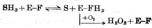 ④混合功能氧化酶(黄素单氧化酶),如此类酶催化氧分子中的一个氧原子到底物中去另一个原子形成水。如底物本身供给电子以水者叫做内部黄素氧化酶,其反应式如下:其中-XH可为-OH或-NH2。