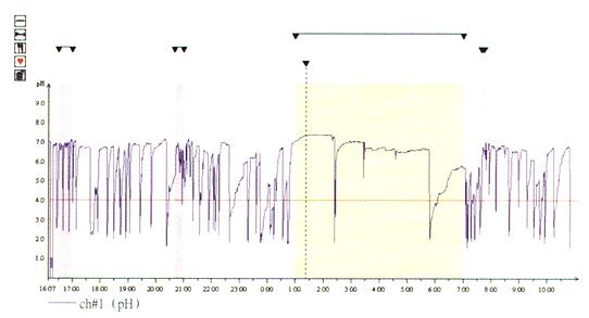 酸反流检测记录表(pH探头置于LES上方Scm)