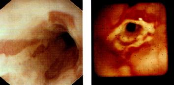 · Ⅱ期:融合性糜烂和渗出性粘膜损害,但并未累及食管全周