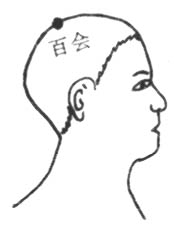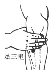 6.手导引(在经穴按揉)内关、间使、足三里、百会(图40~43)等穴,有很好效果。