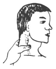 3.头面部出血:一侧头面部出血,可用拇指或其他四指在颈总动脉搏动处,压向颈椎方向。颈部动脉在气管与胸锁乳突肌之间(图9)。