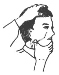 2.颜面部出血:一侧颜面部出血,用食指或拇指压迫同侧面动脉搏动处。面动脉在下颌骨下缘下颌角前方约3cm处(图8)