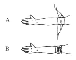 (5)上止血带松紧要适当,以上后血止并摸不到动脉搏动为度。