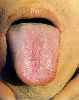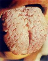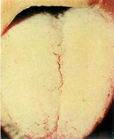 ④裂纹:舌体上有多种纵行或横行的裂沟或皱纹,多由于粘膜萎缩而形成。裂纹舌可见于少数正常人。舌质红绛而有裂纹者多属热盛;舌质淡而有裂纹者多属气阴不足。