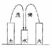 3.五行制化:在五行相生之中,同时寓有相克,在相克之中,同时也寓有相生。这是自然界运动变化的一般规律。如果只有相生而无相克,就不能保持正常的平衡发展;有相克而无相生,则万物不会有生化。所以相生,相克是一切事物维持相对平衡的两个不可缺少的条件。只有在相互作用,相互协调的基础上,才能促进事物的生化不息。例如,木能克土,但土却能生金制木。因此,在这种情况下,土虽被克,但并不会发生偏衰。其它火、土、金、水都是如此。古人把五行相生寓有相克和五行相克寓有相生的这种内在联系,名之曰“五行制化”。制化规律的具体情况如下: