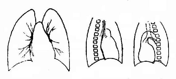 左前斜位:早期无异常。重度左房增大可将左主管气管向上抬高。右室增大使心前缘下段向前隆凸。