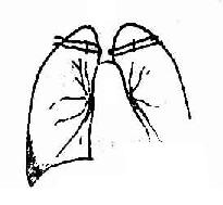 (1)少量积液(图3-37):积液首先聚积于后肋膈角,立位X线检查难以发现,用向一侧倾斜60o或侧卧位或加用头高脚低水平X线投照,方能表现100ml左右的积液。x 线表现为液体沿胸壁内缘形成窄带状均匀致密影。积液量在300-400ml以上的积液,立位观显示,外侧肋膈角变钝、填平。或许见到肋膈角沿侧胸壁有向上延伸的带状影。
