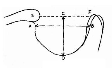前后壁间最大距离为前后径,约8~16mm(平均11.5mm);前后床突间联线至鞍底间最大垂直距离为深径,约7~14mm(平均9.5mm)(图2-10)