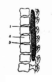 包括髓核、纤维环及上下软骨板。整个椎间在X线片上显示为一透光间隙,称之椎间隙。相邻椎间隙的宽度大致相似。腰椎间隙大于胸椎间隙。