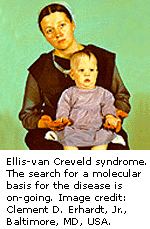 也可叫做“软骨外胚层发育异常”的埃-克综合症是以短肢、侏儒症、多指(多脚趾,或多或少手指)、腕骨畸形、指甲营养障碍、部分唇裂、心脏变形和经常产前长牙为特证的罕见遗传性疾病。