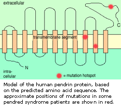 正常基因标识一种Pendrin蛋白质,它只有在甲状腺有效水平中找到,且与大量硫酸盐输送密切相关。但这种蛋白质的基因发生突变时携带这种突变基因的患者将在临床上显示出彭德莱综合症。