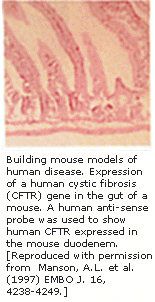 由于在1989年发现CFTR,所以CF研究明显加快,1990年,科学家成功地克隆了正常的基因并在实验室把它加入到CF细胞中,校正钠、氯运输缺陷机制。这种基因治疗的技术在有限的患者中作了试验。然而,这种治疗并没有象原先期望的那么有效,在采用基因治疗之前,还需作进一步研究。同时,其它的实治疗也应证明有用于与CF的斗争。