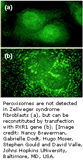 被定位于染色体12的PXR1基因,发生突变就引起澤尔韦格综合症。PXR1基因是在动物细胞,尤其在它们肝、肾和脑细胞过氧化物酶体-微体的表面发现的受体产物,虽然过氧化物酶体参与许多代谢方面的重要反应,但它的功能还不完全清楚。PXR1受体为把酶输入过氧化酶体所必需,只有它功能发挥,过氧化酶体才能使酶发挥它们的重要功能,比如,细胞脂质代谢和代谢氧化作用。