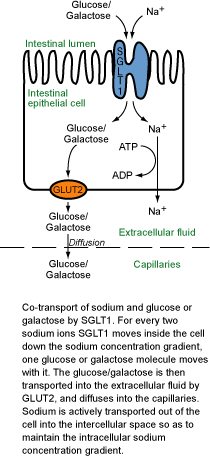 GGM是一种常规染色体隐性混乱,受此影响的个体在位于第22位染色体上遗传了两个SGLTI基因的缺陷拷贝。正常情况下,在小肠(称为腔)关闭空间,乳糖酶把乳糖分解成葡萄糖和半乳糖,而蔗糖酶把蔗糖分解成葡萄糖和果糖,由SGLT1的蛋白质产物然后把葡萄糖和半乳糖从小肠腔送至小肠细胞。而由GGM个体携带的突变产生失去功能的截短SGLTI1蛋白质,或出现不能转化小肠腔外葡萄糖和半乳糖的不适宜蛋白质,如果剩余的葡萄糖、半乳糖不能转化,身体脱水进入小肠腔就导致腹泻。