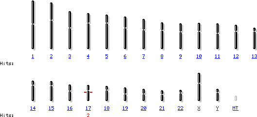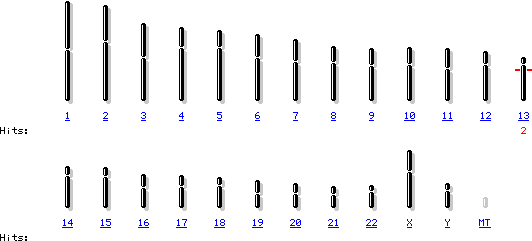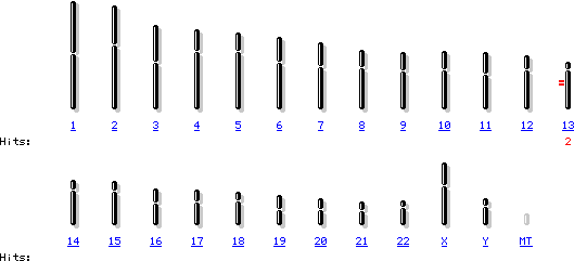 图示:在第13 条染色体上 BRCA 2基因突变表达
