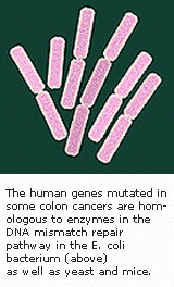 还不清楚的是,为什么在可能产生癌的所有组织中,基因突变是基础,然而对小老鼠和布鲁尔酵母菌(brewer's yeast)中相对应基因的研究正在帮助我们进一步理解DNA修复的机理,并且环境因素的作用也可能易发生结肠癌。