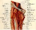 (3)股神经 femoral nerve: 位于动脉的外侧,立即分成多条肌支和皮支,其中有两条神经一直伴动脉下行,即隐神经及其外侧的股内侧肌支。