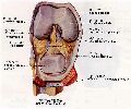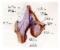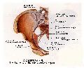 由骶、尾骨和左右髋骨及其韧带连结而成。被斜行的界线(后方起于骶骨岬,经髂骨弓状线,髂耻隆起,耻骨梳、耻骨结节,耻骨嵴到耻骨联合上缘连线)分为两部:界线以上叫大骨盆;界线以下叫小骨盆。小骨盆有上、下两口,上口又称为入口,由界线围线;下口又称为出口,高低不平,呈菱形,其周界由后方前为尾骨尖、骶结节韧带、坐骨结节、坐骨下支、耻骨下支、耻骨联合下缘。两侧耻骨下支在耻骨联合下缘所形成的夹角叫耻骨角,男性约为70~75°,女性角度较大,约为90~100°。