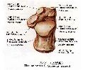 ⑵跖骨metatarsus位于足骨的中间部,共5块,为小型小骨。分为底、体和小头三部,第1、2、3跖骨底分别与第1、2、3楔骨相关节,第4、5跖骨底与股骨相关节。小头与第1节(近节)趾骨底相关节。第5跖骨底向后外伸出的骨突,叫做第5跖骨粗隆。