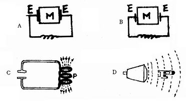 E-电极或幅射器、M-人体,A直接接触法,B电容电场法,
