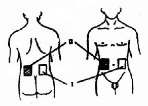 电极 100cm2×4,一对置右腹左腰,一对置左腹右腰,(图4.2.10)。