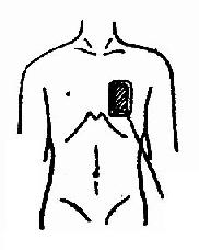 4. 心前区治疗法:两个10×15cm2的电极分别置于心前区及左背部(图2.2.8)。