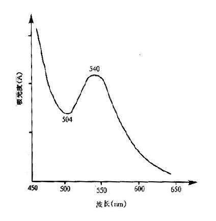 Zander(1984)年提出碱羟血红蛋白(AHD575)测定法,575nm为其检出波长。该法试剂简单,不含有毒剂。呈色稳定,可用氯化血素作标准品,已被许多单位采用。但由于自动积压细胞分析仪或血红蛋白测定仪多采用540nm左右范围滤光板(图为HICN最大吸收峰在540nm),限制了此法在该类仪器的使用。