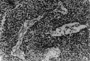 较少见。肿块体积常较大,直径4~6cm或更大,边界较清楚,质松软,灰白色,常杂以灰黄色或暗红色坏死出血区。镜下,癌实质多,间质少。癌细胞较大,圆形、卵圆形,胞浆嗜碱性,核大,染色质丰富,核仁不明显,分裂像较多。间质纤维组织稀少,其中常有淋巴细胞浸润。