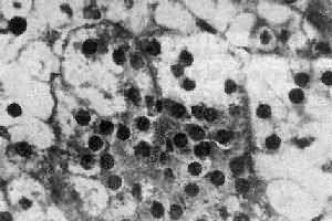 原发性醛固酮增多症(primary aldosteronism)是肾上腺皮质增生的细胞分泌过多的醛固酮所致,引起高血钠症、低血钾症及高血压。本症血清中肾素降低,这是由于钠潴留使血容量增多,抑制了肾素的释放。本病80%是由于功能性肾上腺肿瘤引起,其余为原因不明的两侧肾上腺皮质增生等,这种增生常呈弥漫性,有时也呈结节状,镜下主要为球状带细胞增生,有时也混杂些束状带细胞。