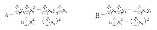 式中,对已知标准样品,x和y分别为实验值和已知值。n是实验的点数。采用上述两个方程,由已知样品的数据,可以求出标准线的两个常数A、B值。对未知样品,只要测出x,利用A、B值可以计算出y值。总之,从实验测得的数据计算该实验方法所用方程的常数,再用这个常数计算出未知样品的分子量,所得结果比作图法精确,且很方便。