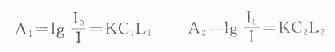 由于分析的物质相同,处理也一样,故K值相同,再因为测定时用同样比色皿(L1=L2),所以光度法中测得未知液与标准液吸光度的比值就等于其浓度的比值。(A1/A2=C1/C2)。如C1为未知物浓度,则可得到计算公式如下: