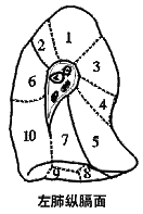 ![]() | ![]() | (一)右肺 1、尖段支气管 2、后段支气管 3、前段支气管 4、外段支气管 5、内段支气管 6、尖(上)段支气管 7、内侧底段支气管 8、前底段支气管 9、外侧底段支气管 10、后底段支气管 | (二)左肺 1、尖后段支气管 2、尖后段支气管 3、前段支气管 4、上舌段支气管 5、下舌段支气管 6、尖(上)段支气管 7、内前底段支气管 8、内前底段支气管 9、外侧底段支气管 10、后底底段支气管/ |