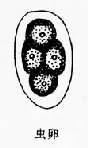 虫卵 椭圆形,壳薄,无色透明。大小约为56~76×36~40µm,随粪便排出时,卵内细胞多为2~4个,卵壳与细胞间有明显的空隙。若患者便秘或粪便放置过久,卵内细胞可继续分裂为多细胞期。十二指肠钩虫卵与美洲钩虫卵极为相似,不易区别(图16-12)。