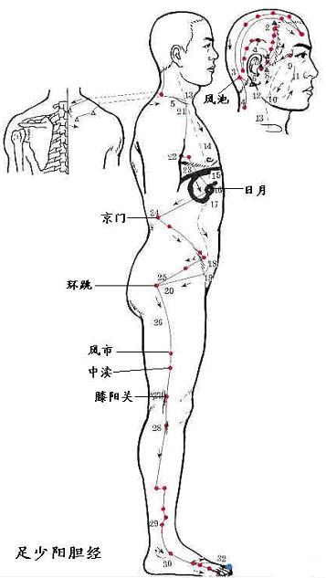 由于这些废物不是人体的组织,因此会在组织之间流动,如果这个人喜欢运动,大腿部位寒气和组织废物所形成的垃圾会往下流动,转而堆积到小腿肚上,形成萝卜腿。通常男人较女人活动力大些,因而女人多数堆在大腿外侧,男人则大多堆在小腿肚上。这种现象即是本书前面所说寒气所造成胆经阻塞的原始原因,也就是胆经的寒气堆积造成胆功能受阻,再造成吸收的障碍。敲胆经一方面能刺激胆经,强迫其分泌胆汁;另一方面使这些堆积的废物能够流动,进而排出体外。