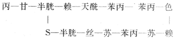 1.生长抑素(生长素释放抑制素,growthhormone release-inlease-inhibiting hormone,GHRIH,或somatostatin)是由116个氨基酸的大分子肽裂解而来的十四肽,其分了结构呈环状,在第3位和第14位半胱氨酸之间有一个二硫键,其化学结构为: