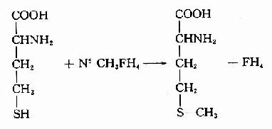 蛋氨酸分子中的甲基也是一碳单位。在ATP的参与下蛋氨酸转变生成S-腺苷蛋氨酸(Sadenosylmethionine,又称活性蛋氨酸)。S腺苷蛋氨酸是活泼的甲基供体。因此四氢叶酸并不是一碳单位的唯一载体。