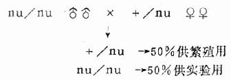 ⑵裸鼠繁殖方法最好选用纯合子隐性(nu/nu)雄鼠与杂合子(nu/+)雌鼠进行交配生产。因为纯合子隐性雄鼠一般能正常生育,其仔代裸鼠和正常仔鼠的比例为1:1;所有正常的仔鼠都是杂合子,当用这些小鼠作实验对照时,就可明显地观察到纯合子与杂合子之间的不同差异。裸鼠繁殖的其它二种方法,均存在一定缺点,如采用杂合子(nu/+)雌雄鼠交配时,其子代中裸鼠与表现型正常的仔鼠的比例为1:3,所繁殖的裸鼠少,而且繁殖的正常小鼠可能是nu/+或+/+两种基因的小鼠,除非通过育种,否则不易区别。又如采用纯合子隐性(nu/nu)雄鼠和雌鼠交配繁殖,虽然所有的子代都是裸鼠,但这种繁育方法不很有效,因为雌裸鼠繁殖力低,同时护理也很困难。
