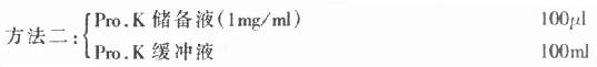 取储备液(1mg/ml)按1:40稀释,充分混合,即得约含Pro.K为25mg/ml的工作液。