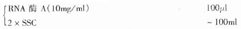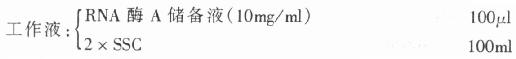 临用前,取RNA酶A储备液,用2×SSC溶解配成工作液(0.01mg/ml).