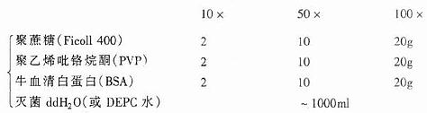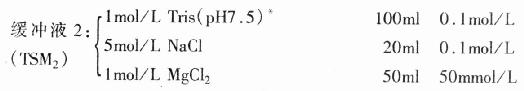 (3)DNaseⅠ:干粉状DNaseⅠ(2000~3000u/mg)溶于20mmol/l Tris-HCl, pH7.5中(1mg/ml),10μl分装,-20℃保存一年。