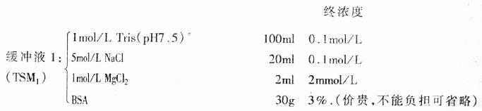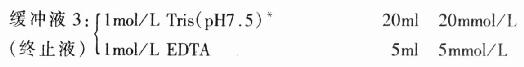 (4)10×DNA聚合酶Ⅰ(Klenow片段)缓冲液:500mmol/l Tris-HCl,pH6.6;100mmol/L Mg-Cl2;10mmol/L DTT;0.5mgBSA。