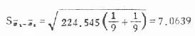 (3)计算各组均数,合并方差S2c及两均数相差的标准误Sχ1-χ2,然后求t值。